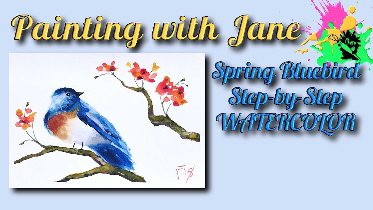Easy Spring Bluebird For Beginners Acrylic On Canvas Painting Tutorial Youtube Canvas Painting Tutorials Watercolour Tutorials Bluebird Painting